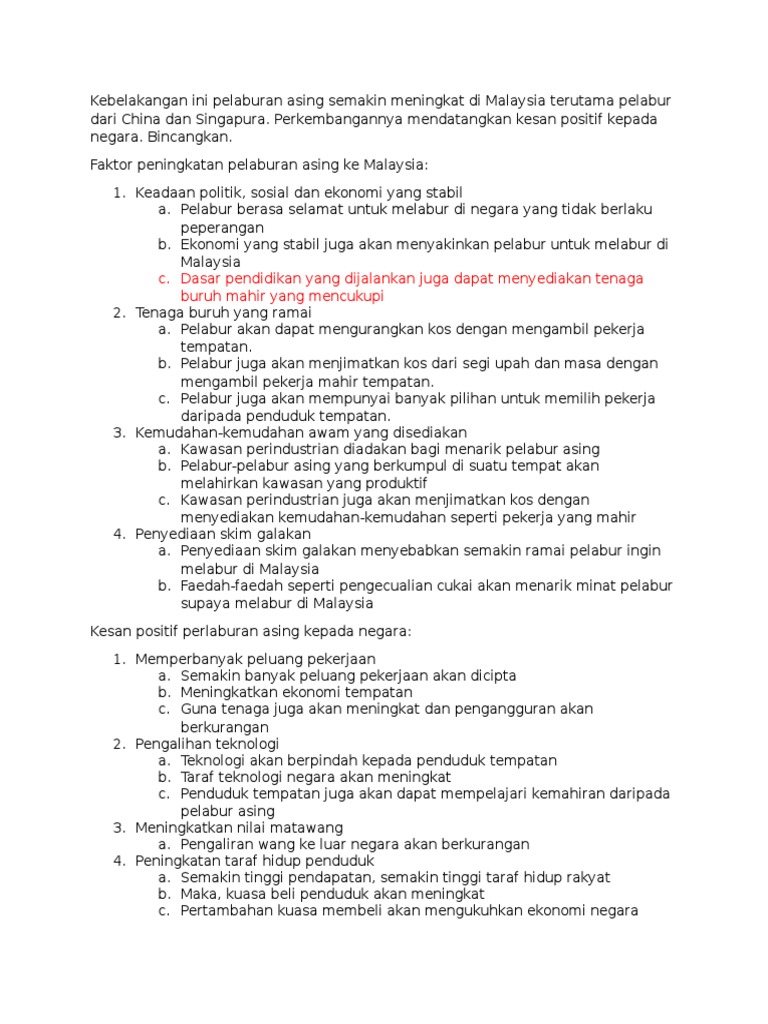 Faktor Faktor Yang Menggalakkan Pelaburan Asing Fdi
