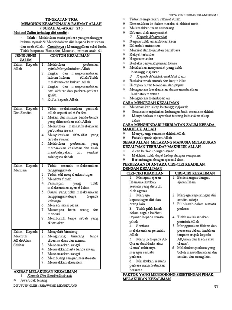 Nota Pendidikan Islam Tingkatan Tiga Doc 1
