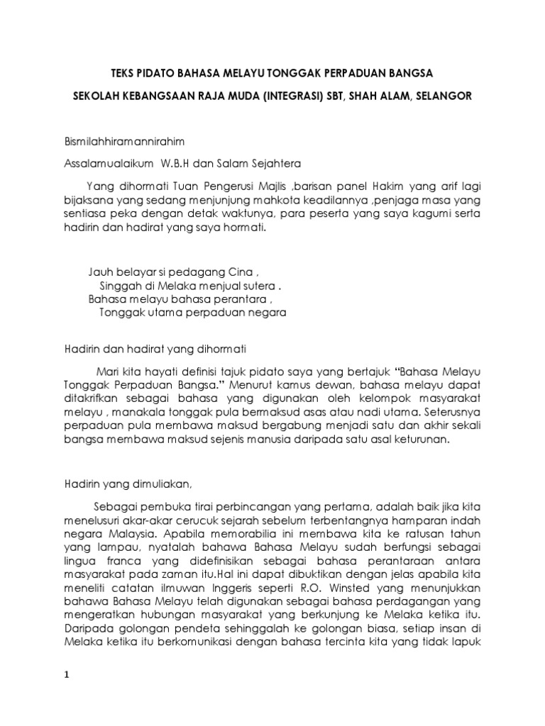 Teks Pidato Bahasa Melayu 2017