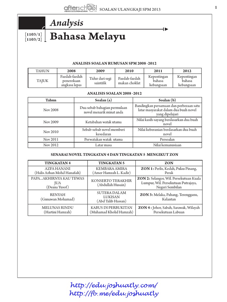 Laman Bahasa Melayu Spm Ulasan Dan Cadangan Soalan 4 A Kajian Satu Novel Dan Soalan 4 B Kajian Dua Novel Peperiksaan Spm 2018