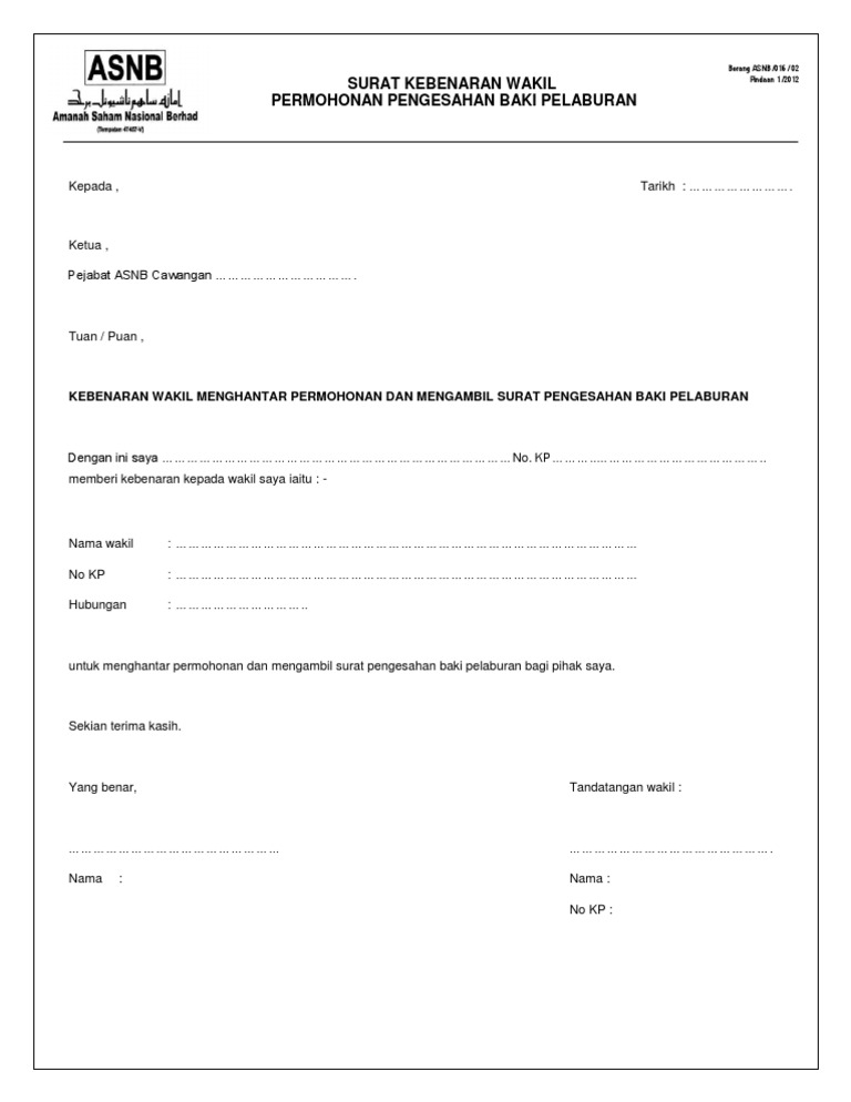 Surat Rasmi Wakil Ambil Geran Surat Rasmi H