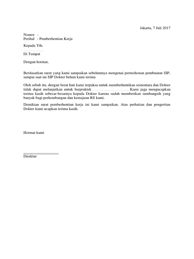Contoh Surat Pemberhentian Kerja Pemutusan Hubungan Kerja Phk