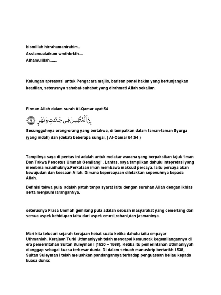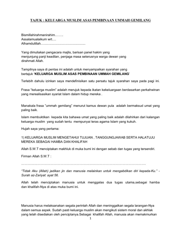 220432650 Teks Syarahan Docx Perpaduan Asas Kecemerlangan Negara Yang Mulia Tuan Pengerusi Majlis Barisan Panel Hakim Yang Adil Lagi Bijaksana Course Hero