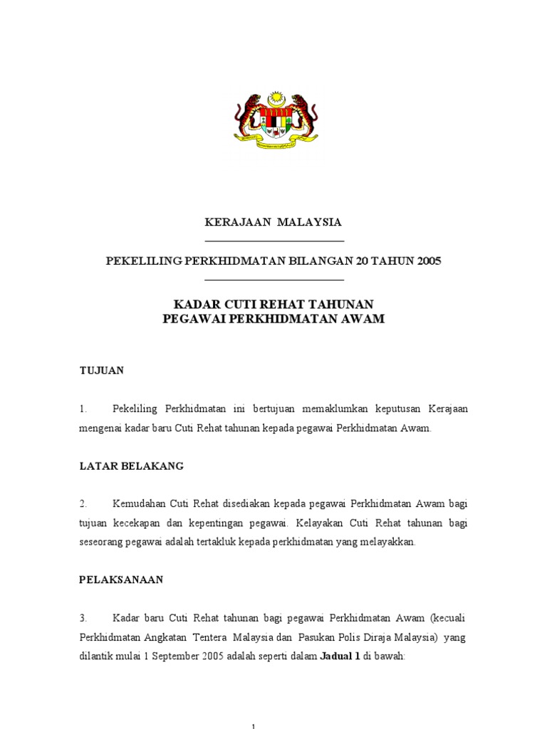 Aliran buku perkhidmatan awam anda boleh rujuk aliran berikut mengenai perkara yang akan dicatatkan dalam buku rekod perkhidmatan serta mengenai kemudahan cuti yang dipohon. Jabatan perkhidmatan awam jpa adalah bertanggungjawab meluluskan award gantian cuti rehat ini. Perkiraan kelayakan cuti rehat jumlah kelayakan mengikut gred x bulan perkhidmatan 12 bulan membawa ke hadapan cuti rehat anggota dibenarkan mengumpul baki cuti rehatnya yang berkelayakan dalam tempoh 2 tahun perkhidmatan ke tahun ke tiga. Cuti rehat tahunan pegawai perkhidmatan awam persekutuan adalah seperti yang berikut.