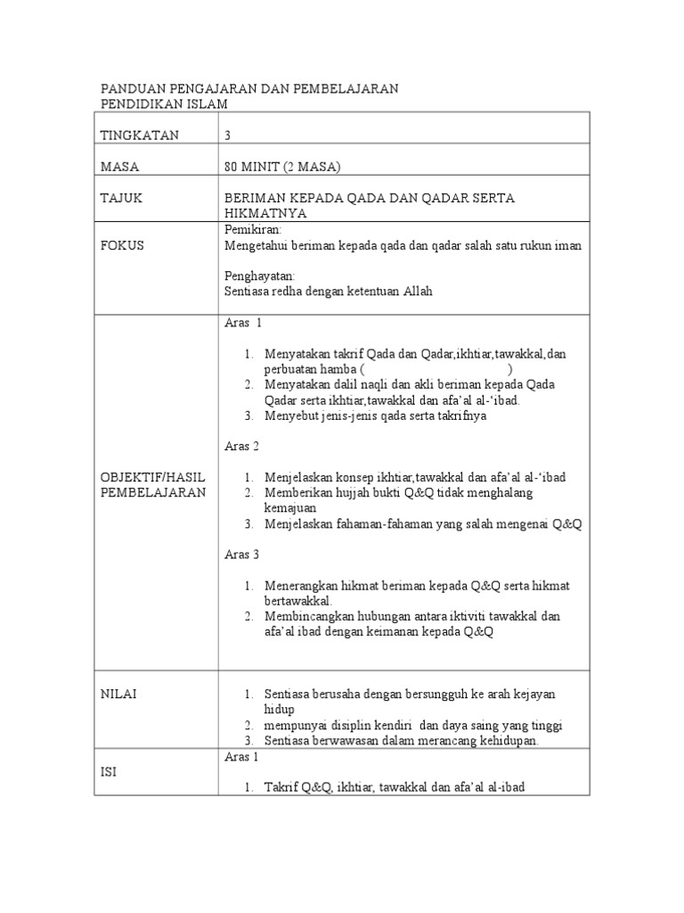 3 1 Memahami Dan Meyakini Konsep Beriman Kepada Qada Dan Qadar Pendidikan Islam Kssr