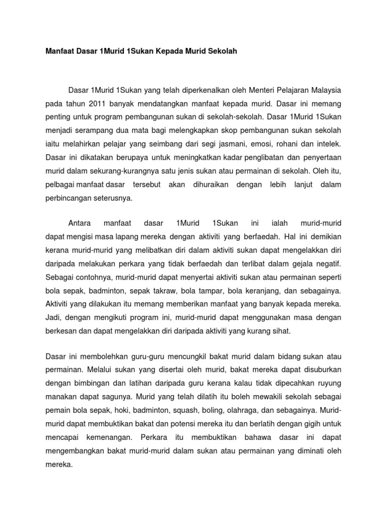 Doc Faedah Faedah Pelaksanaan Dasar 1murid 1sukan Mak Wen Hui Academia Edu