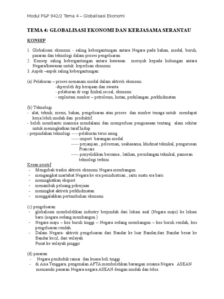 Modul P P Geografi Stpm Tema 4 Globalisasi Dan Kerjasama Ekonomi