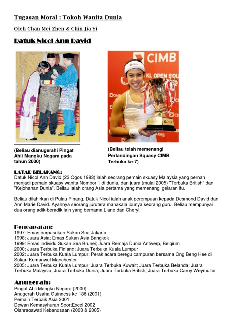 5 6215317199188394095 Docx 000229120060 Tema Tokoh Sukan Tajuk Datuk Nicol Ann David Latar Belakang Pencapaian Dan Sumbangan Beliau Dalam Sukan Squasy Course Hero