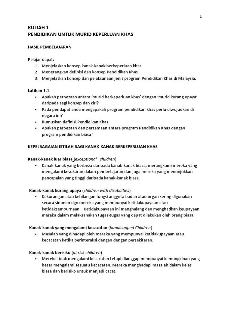 Pdf Kuliah 1 Pendidikan Untuk Murid Berkeperluan Khas Hasmadi Othman Academia Edu