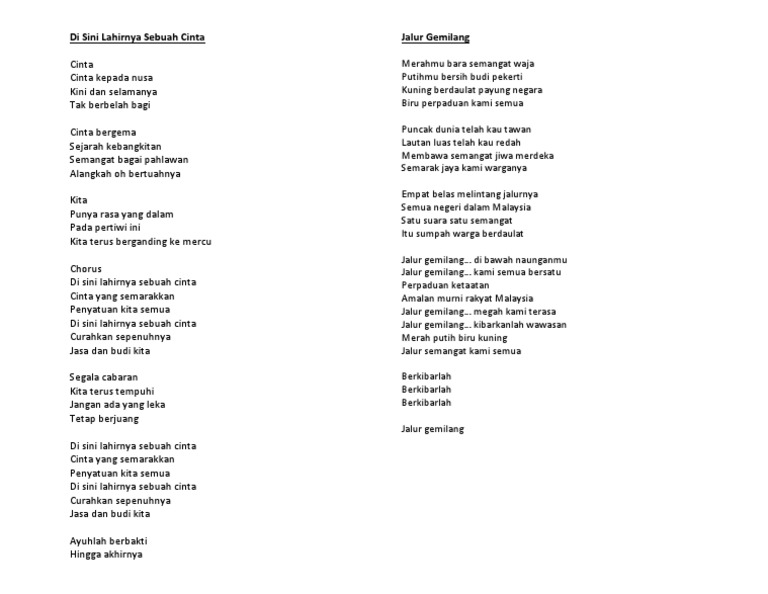 Lirik Lagu Di Sini Lahirnya Sebuah Cinta Merdeka 57 2014