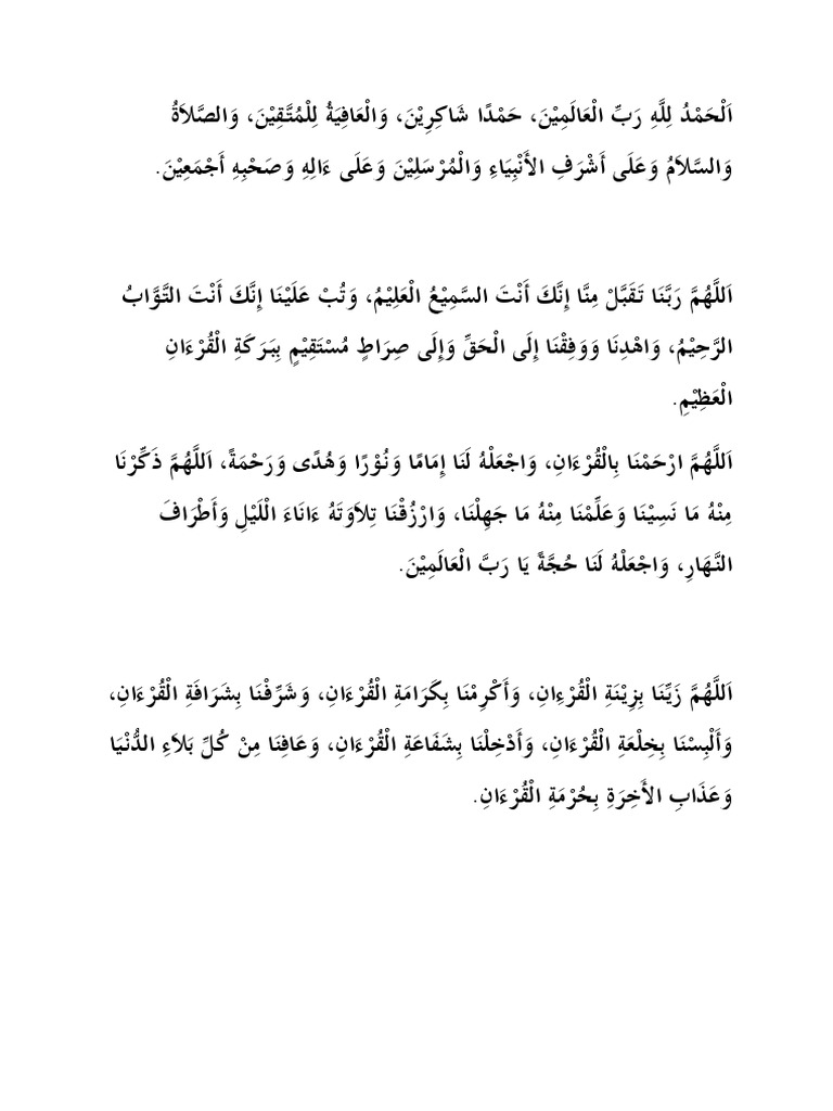 Dua Khatmil Quran In Arabic Text Upon Completing Complete Khatm Khatam