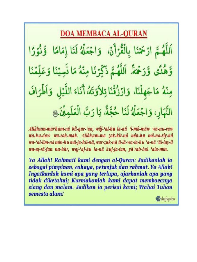 Doa Sebelum Dan Selepas Membaca Al Quran Rumi Jawi