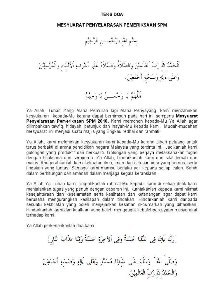 Teks Doa Majlis Restu Ilmu Peperiksaan Upsr Pt3 Spm Dan Stpm Putihmelati Com