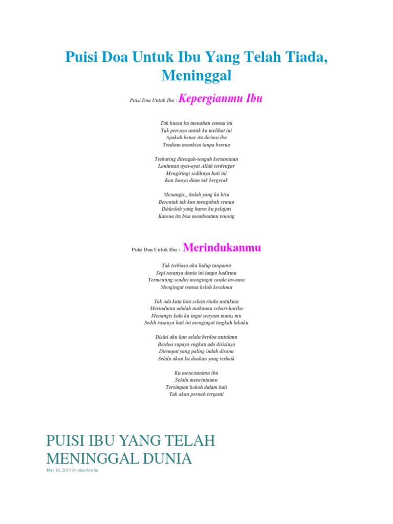 Puisi Doa Untuk Ibu Yang Telah Tiada Docx