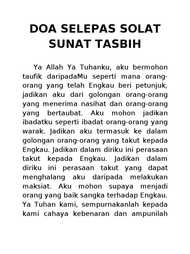 Doa Solat Sunat Tasbih Jalan Akhirat