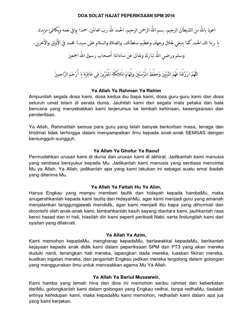Doa Dan Panduan Ibubapa Untuk Anak Menghadapi Peperiksaan Docx