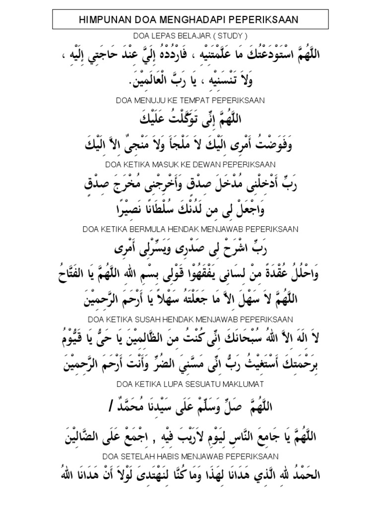Doa Sebelum Masuk Kelas Dewan Peperiksaan Dr Mohamed Ayyub Hassan