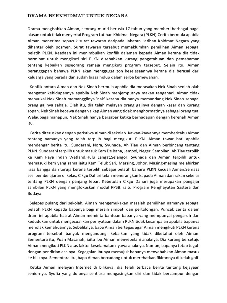Drama Berkhidmat Untuk Negara Docx Komsas Tingkatan 4 Drama Tajuk Berkhidmat Untuk Negara Sinopsis Drama Ini Mengisahkan Aiman Seorang Pelajar Yang Course Hero