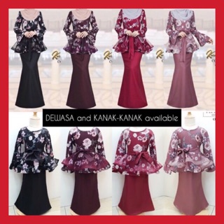 Kids Dewasa Baju Kurung Moden Muslimah Raya 2020 Peplum Dress Cotton Lace Tutu Bridesmaid Tunang Murah Shopee Singapore