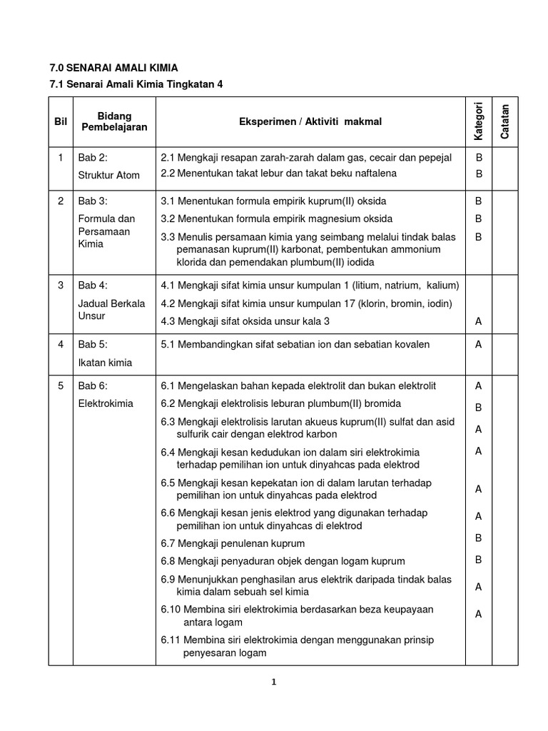 Senarai Amali Kimia