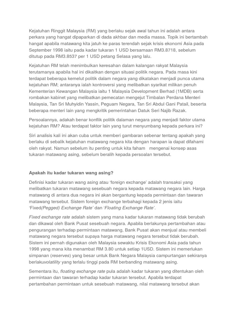 Faktor kejatuhan nilai mata wang. Pada januari 2010 nilai ringgit meningkat kepada rm 3 30. Faktor kejatuhan mata wang malaysia 1. Kejatuhan nilai ringgit dijangka akan menarik lebih ramai pelabur ke negara ini kerana nilai mata. Berikutan kejatuhan nilai ringgit dan pengukuhan mata wang usd.