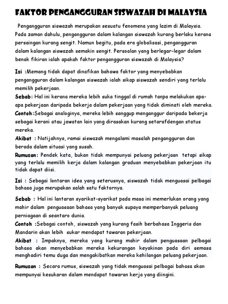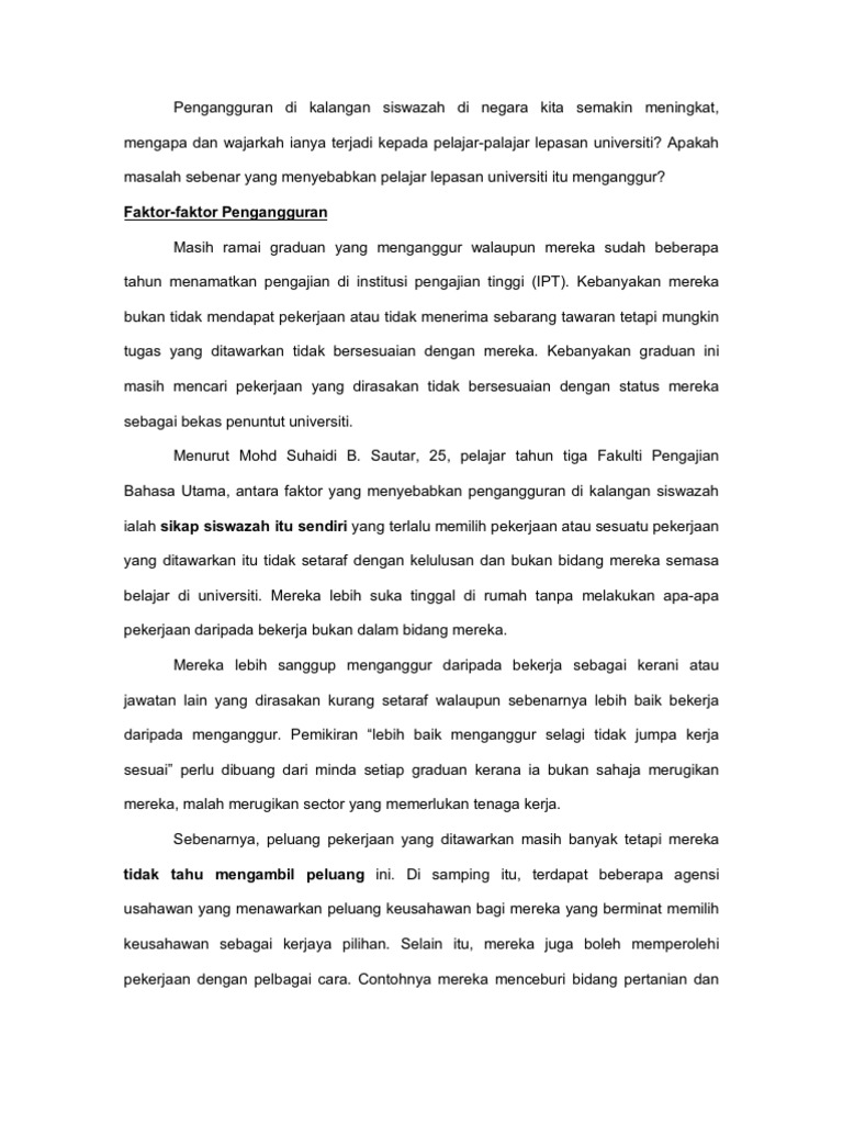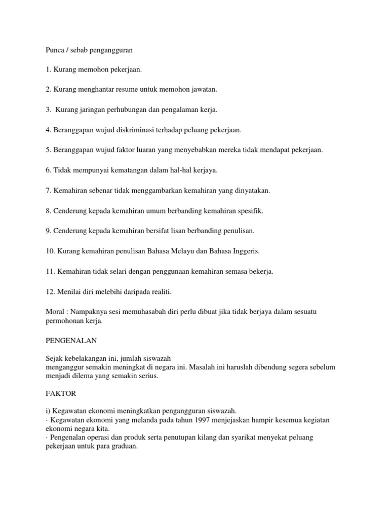 Masalah Pengangguran Di Malaysia Pdf