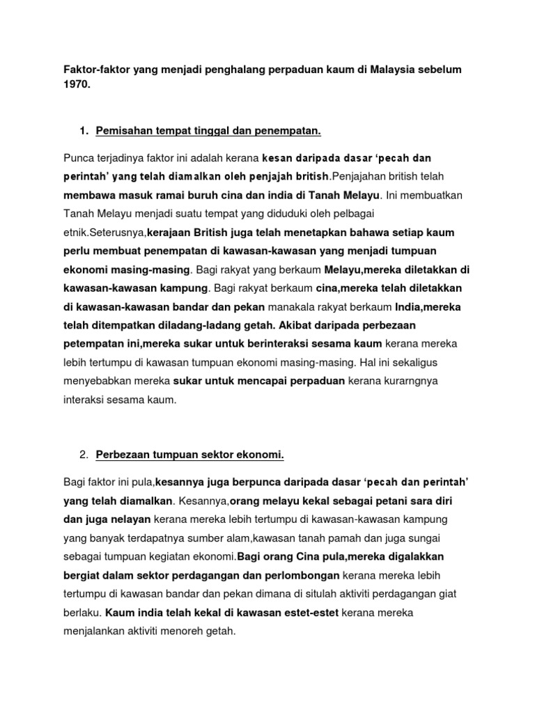 Faktor Faktor Yang Menghalang Perpaduan Di Malaysia Sebelum Tahun