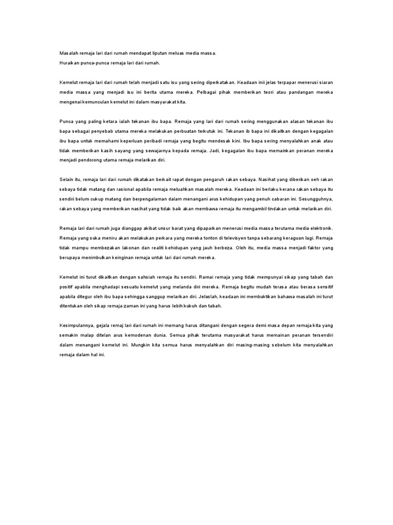 Bahasa Melayu Untuk Pengurusan Sblm1053 Tajuk Masalah Sosial Masalah Remaja Lari Dari Rumah