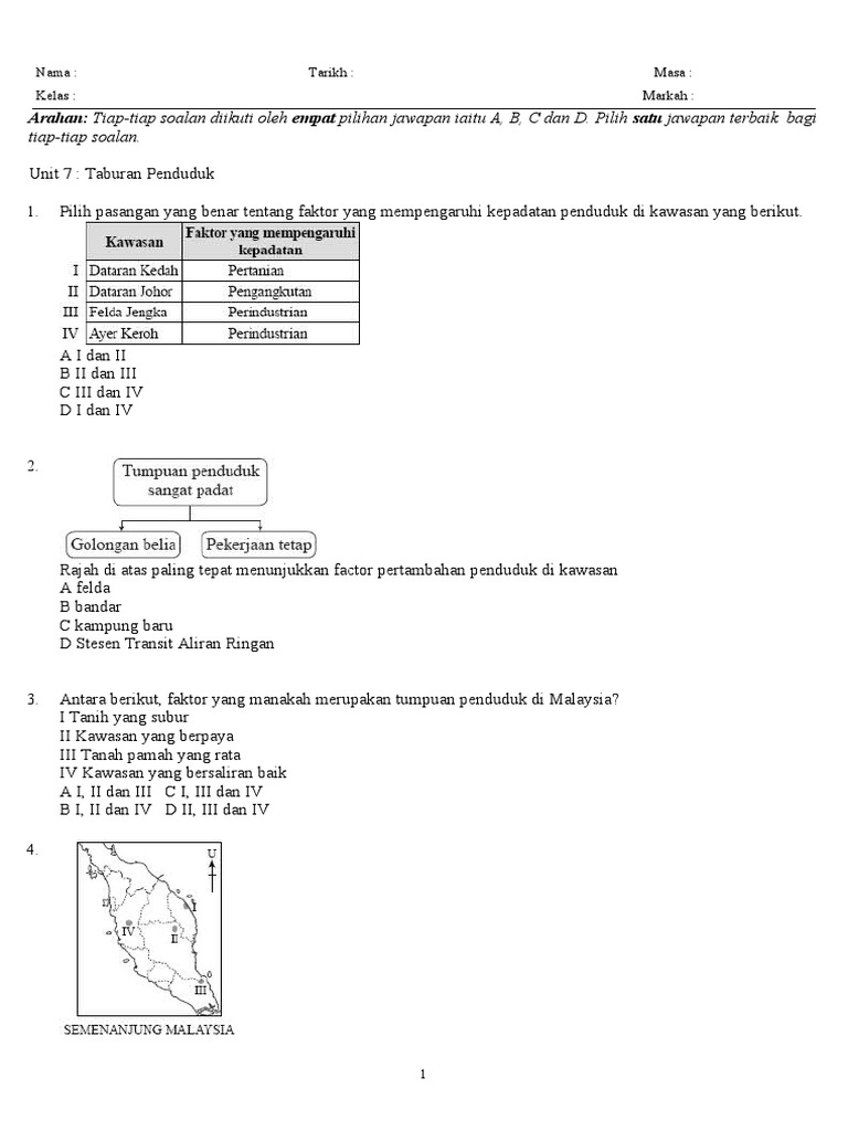 Latihan Geo Ting 2 Bab 7 Taburan Penduduk