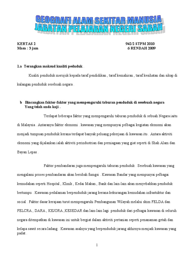 Soalan Beserta Skema Geo Manusia Stpm 2008 Sem 1 Pages 1 9 Text Version Anyflip