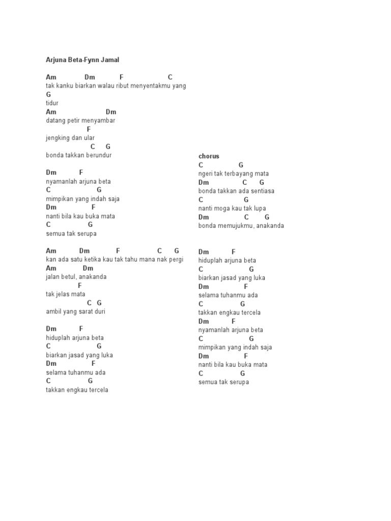 Fynn Jamal Arjuna Beta Lirik Chords Chordify
