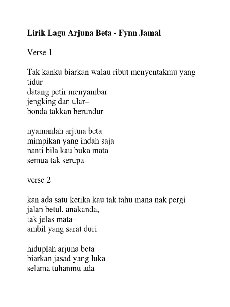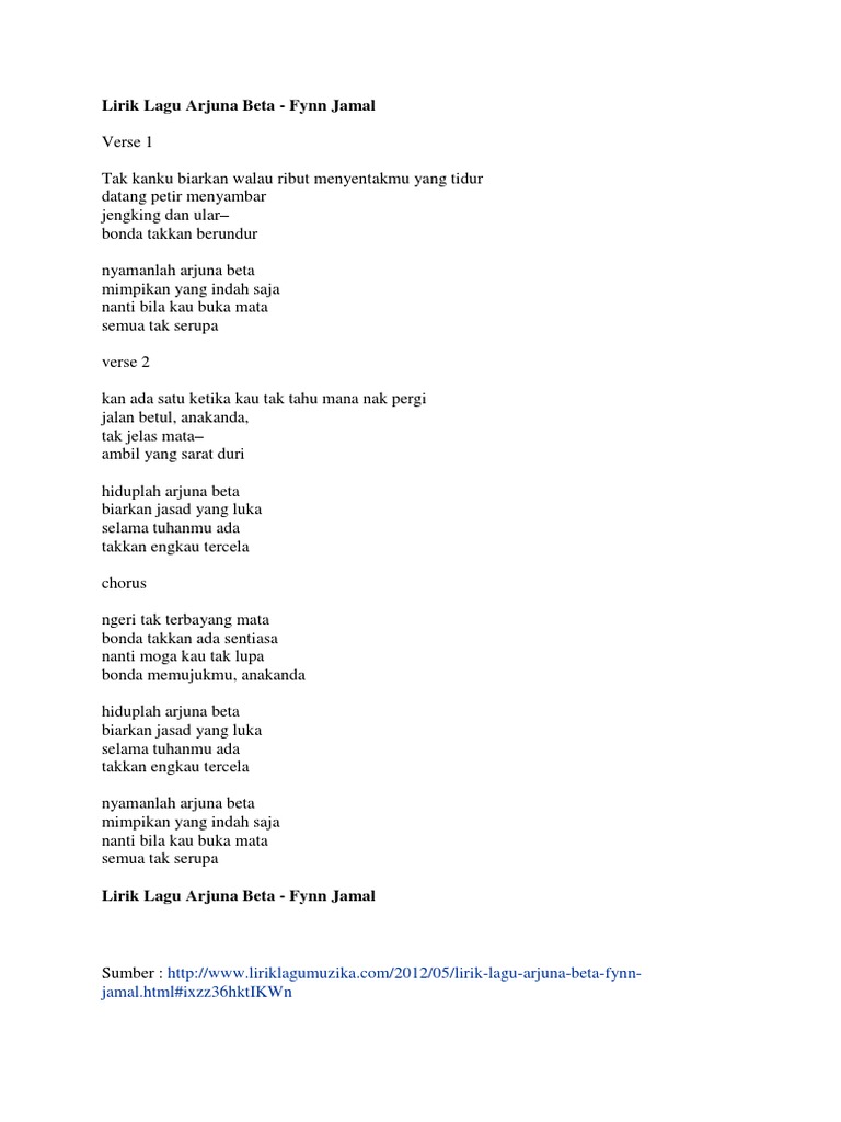 Lirik Lagu Arjuna Beta Fynn Jamal Jamal Html Ixzz36dpqpvvz