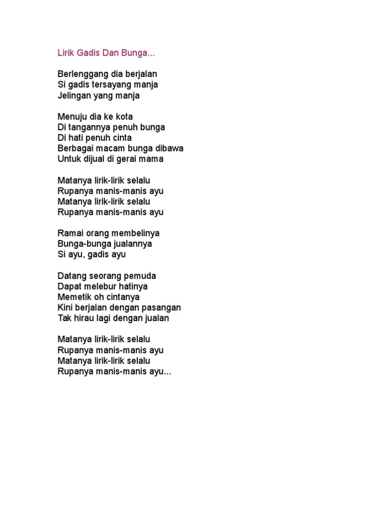Lirik Gadis Dan Bunga Dengar Dan Muat Turun Gadis Dan Bunga Mp3 Percuma Online