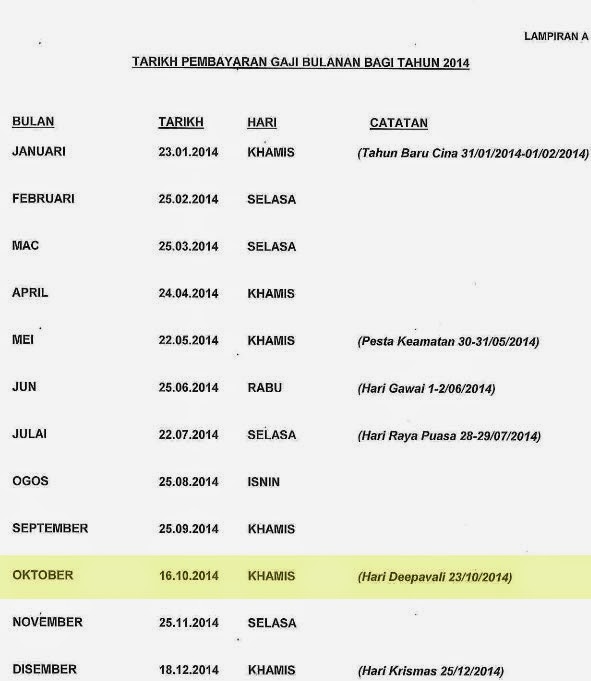 Tarikh Bayar Gaji Kakitangan Awam Oktober 2014 Diawalkan Ohcewek
