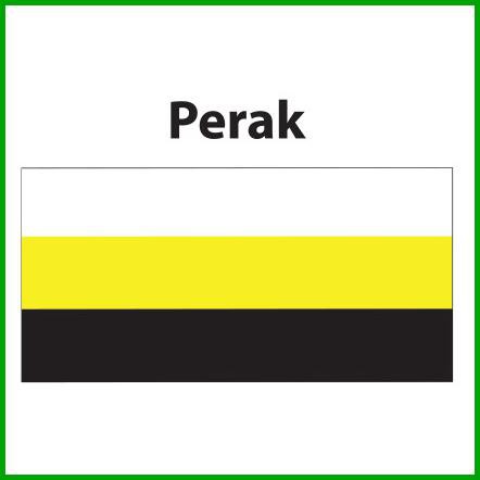 Bendera negeri perak darul ridzuan mengandungi tiga warna berjalur putih kuning dan hitam.