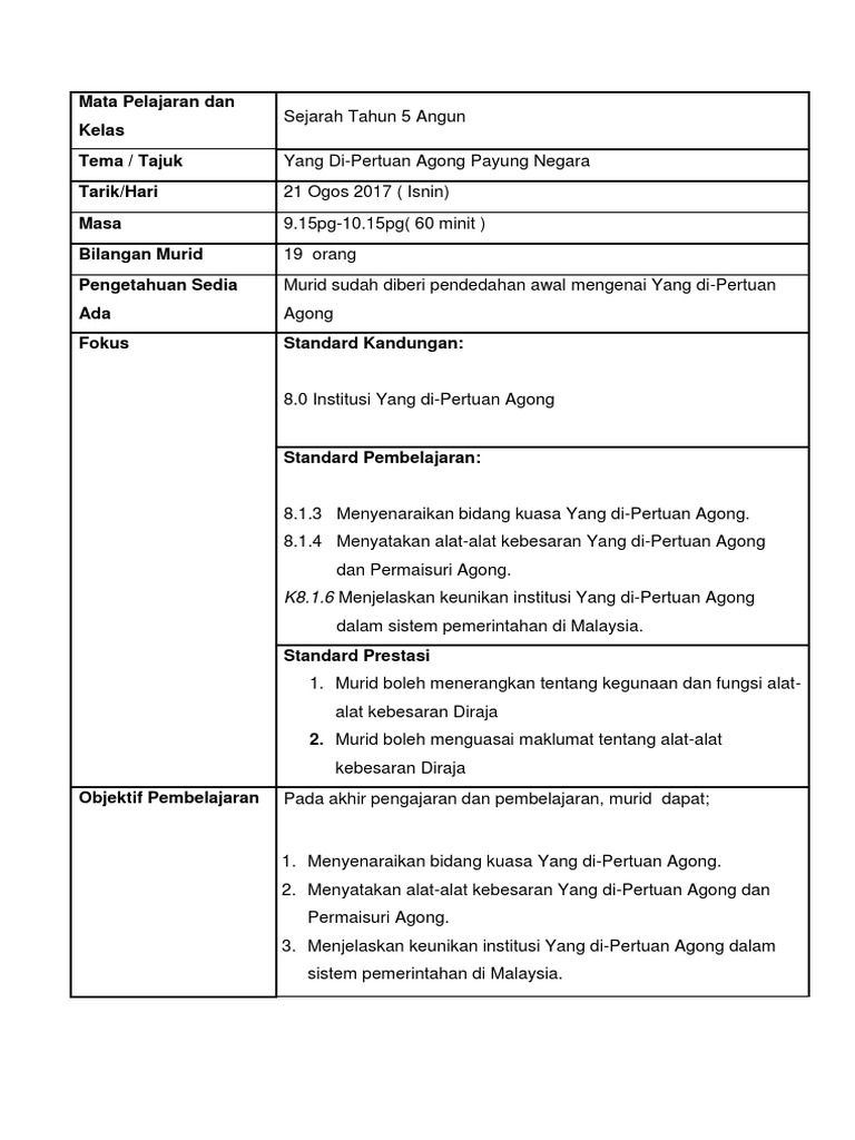 Rph Sejarah Tahun 5 Yang Di Pertuan Agong